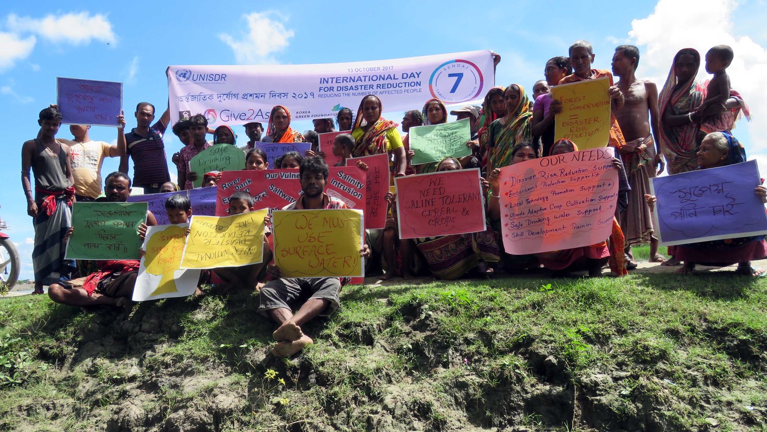 So, the people and communities around the world have been celebrating this day. BEDS is community based organization works for maintaining the balance between human and nature. Like all other organizations, BEDS community has also celebrated the day in the Sundarbans coastal region of Bangladesh at Satkhira district and Khulna district. “To reduce the number of people affected by disasters by 2030” is the slogan for this year. The communities’ aim of celebrating the day was to bring their voice to the global community. Sundarbans coastal communities face different natural disasters like cyclone, flood, riverbank erosion, tidal surges, over and unusual rainfall, draught etc. But the major problem is riverbank erosion and cyclone. At the beginning of the day’s activity, community discussed about their vulnerability of disaster. Then they discussed about how they can reduce their disaster risks. They also discussed about their needs. Very recently a big portion of land is washed away by riverbank erosion beside the place where today’s activities took place in Khulna district. Local community demonstrated their vulnerability, resources and needs through displaying placards and festoons. Activities of the day ended through a big rally. The community urged to the global community to realize their sufferings and help them to reduce their disaster risk.