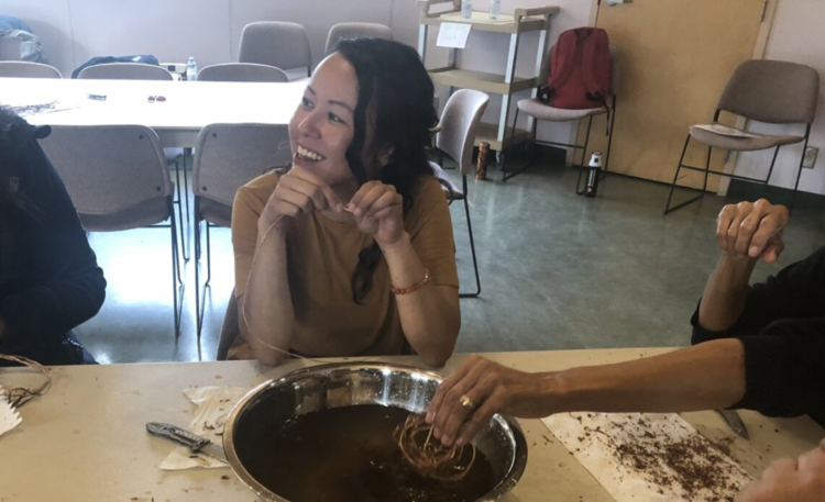 Kristen Tanche at a Dehcho First Nations Dene Zhatie Language Sharing Gathering. Photo: Justina Black